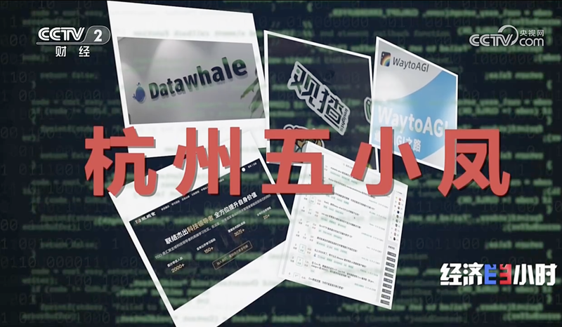 2026年1月28日晚8:00,CCTV2黄金档栏目《经济半小时》播出《中国经济坐标:数实融合的浙江范式》节目,报道了“杭州五小凤”中的两家企业Datawhale和观猹,他们的创始人都是杭州电子科技大学的年轻校友。datawhale创始人是杭电2016级研究生校友范晶晶,2018年创立Datawhale。观猹创始人是杭电2020级本科生校友仲泰,2025年7月观猹正式上线。