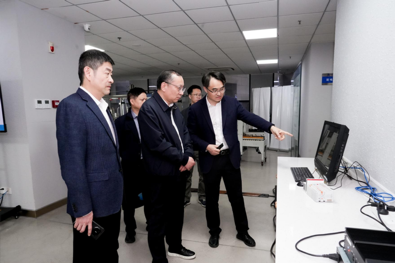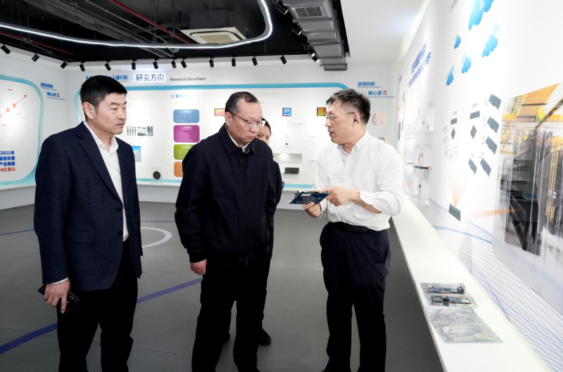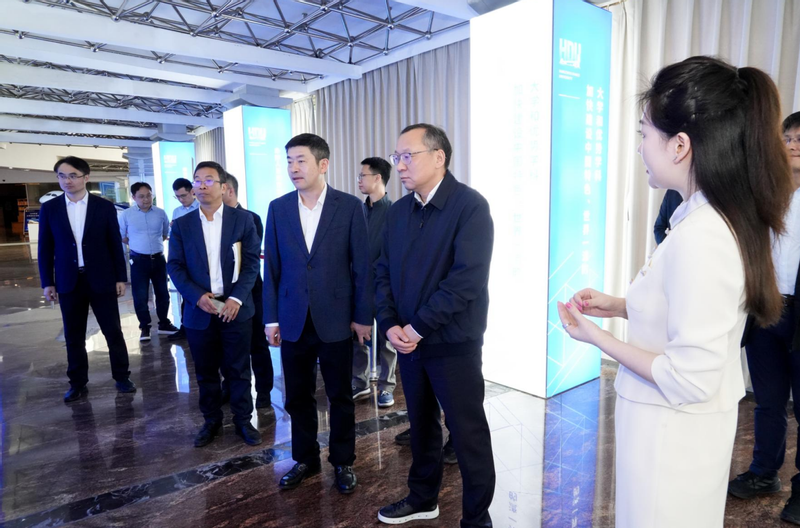 沈敏一行首先参观“在杭电看见数字科技” 成果展,全面了解我校办学历史、学科建设、人才培养及重大科研成果。随后,实地考察微电子研究院、工业互联网研究院。
