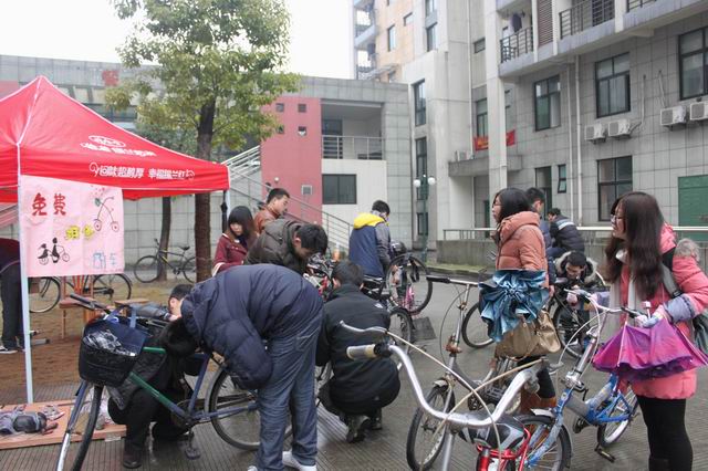 机械工程学院学子义务为师生修车