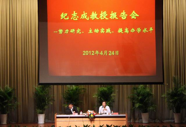 4月24日下午,江南大学副校长纪志成教授应邀来校,作了题为“努力研究、主动实践,提高办学水平”的专题报告。校长薛安克主持报告会。