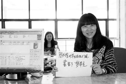 照片中,一张张朴实的面孔对着镜头微笑,手举的纸板上凝结着他们对这群即将离开校园的孩子们的祝福。这其中有学弟学妹、图书管理员(图3)、校卫队班长、宿管员、食堂大厨、餐厅阿姨、保洁员,甚至还包括学校奶茶店和水果店老板(图4)。相册目前已被浏览近3万次。