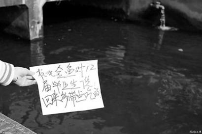 在这些照片中,一张用拟人手法表达的祝福格外俏皮,照片主角是池塘里成群的金鱼,纸板上写着:“杭电金鱼对(20)12届毕业生说,回来多带点吃的。(图5)”沈龙泉说,这些金鱼是我们校园的一个特色,很多同学下课后会带上吃的去喂它们。2012年6月1日《新闻晨报》http://edu.online.sh.cn/education/gb/content/2012-06/01/content_5351781.htm