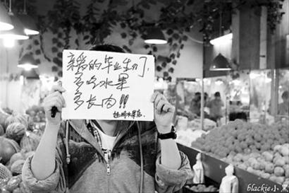 毕业季拼创意。近日,杭州电子科技大学的几名毕业生突发奇想,手拿纸笔和相机穿梭在校园里“讨要”祝福,从图书管理员到宿管阿姨,从食堂厨师到水果店老板,都在纸板上写下祝福并拍照留念。目前,这组近30张饱含温情的照片被汇集成一本“母校杭电想对你们说”的人人网电子相册,感动了不少网友。