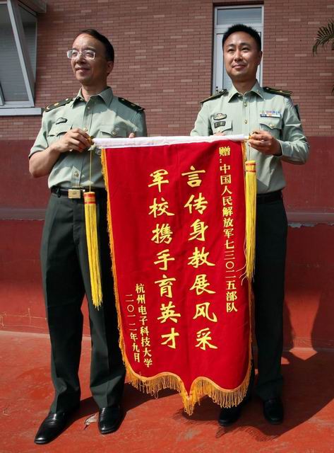 校党委书记费君清代表学校向承训部队首长赠送锦旗