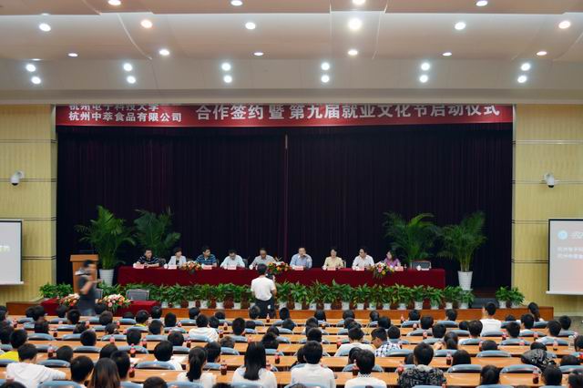 我校与杭州中萃食品有限公司合作签约暨第九届就业文化节启动仪式在下沙校区科技馆举行