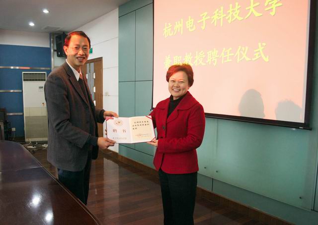 吴桂英表示,很高兴受聘为杭州电子科技大学兼职教授,今后将尽自己最大的努力参与学校人才培养事业,利用专业实践资源优势,为学校学科建设、人才培养、学生社会实践及就业等方面作出贡献。
