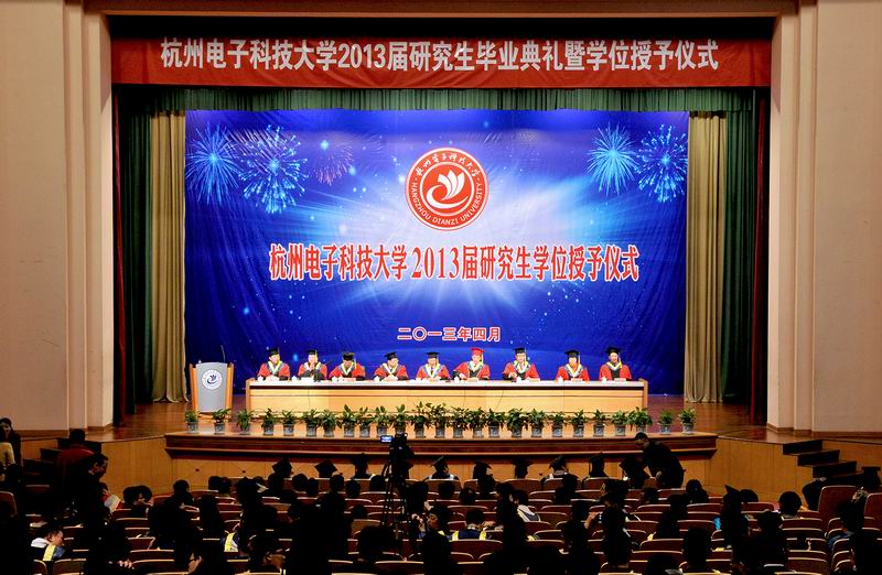 4月2日上午,我校2013届研究生毕业典礼暨学位授予仪式在下沙校区文化活动中心剧院隆重举行。校领导费君清、薛安克、陈畴镛、金一斌、冯浩、孙玲玲、朱泽飞、胡华、郑宁,各研究生培养学院党政负责人,相关职能部门和其他学院负责人,研究生导师代表、毕业研究生家长代表,研究生教育管理工作人员,以及全体2013届毕业研究生出席典礼。毕业典礼暨学位授予仪式由校党委副书记金一斌主持。