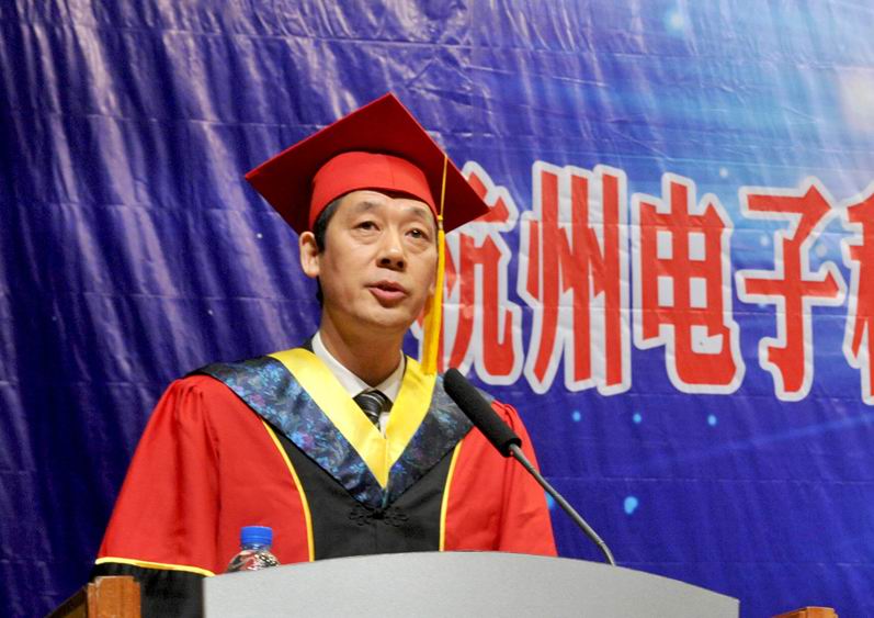 毕业生代表邓宇轩同学登台发言,向母校和老师们表达由衷感谢,表示无论以后走向何方,身在何处,都会感恩母校的悉心培养,努力拼搏,去实现“今天我以杭电为荣,明天杭电以我为傲”的美丽梦想,共筑中华崛起的中国梦。
