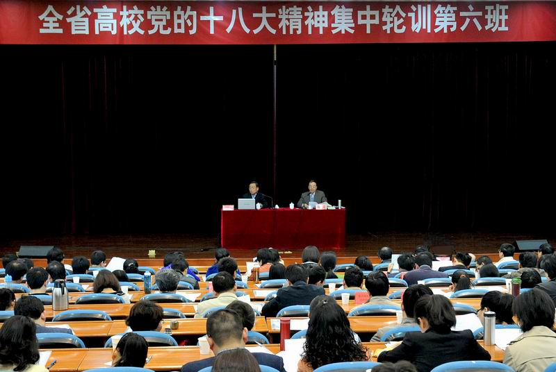 全省高校党的十八大精神集训第六班在我校下沙校区科技馆开班