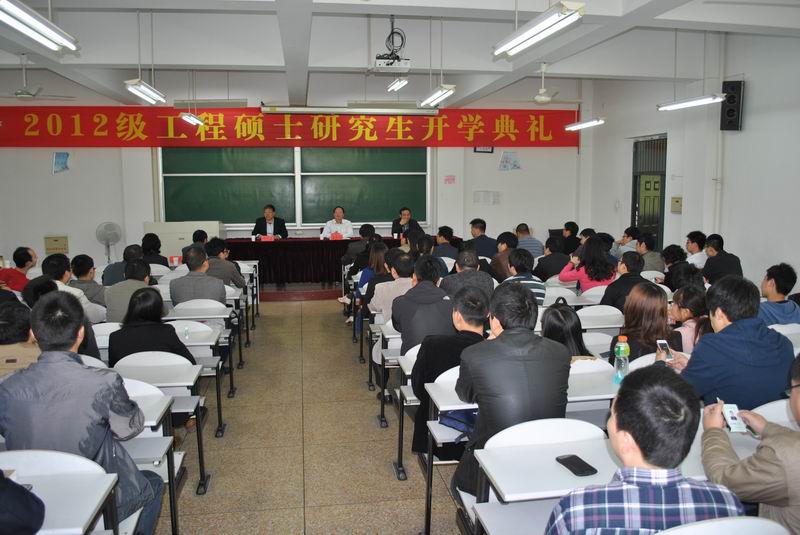 4月13日上午,我校2012级工程硕士研究生开学典礼在文一校区举行,副校长朱泽飞,导师代表,研究生院、研工部和各工程硕士培养学院负责人和管理人员,以及188名2012级工程硕士研究生新生参加典礼。
