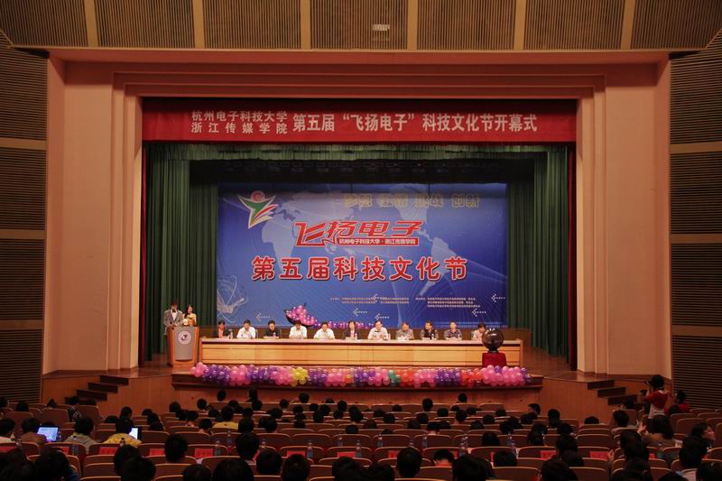 我校和浙江传媒学院联合举办的第五届“飞扬电子”科技文化节开幕式于4月17日在我校文化活动中心剧院举行