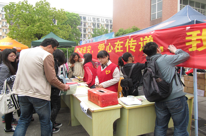 此外,通信工程学院心理工作站通过开设募捐通道,在5天的时间里共募集善款6843元,并通过在线方式汇往壹基金联合救灾雅安专项救援捐赠平台。管理学院青协也于24日在文化活动中心开展“汇爱雅安·图书义卖”活动,通过义卖二手书的形式,当天即筹得善款4283元。