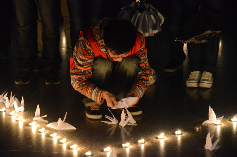 22日晚7点,一场全校学生组织集体参与的大型祈福活动“为雅安祈福,为中国加油”在文化活动中心舞池举行。校团委相关负责人、各学生组织代表以及同样牵挂着灾区同胞的同学参加了活动。来自外国语学院的秦雯佩家住成都,经历过汶川大地震的她格外能够体会此时雅安人民的心情。庆幸的是,这次地震并没有给雯佩家中造成多大影响,雯佩说:“我的家人都平安无事,但是一想到与我们相邻的灾区人民,我就感到十分心疼。”人文与法学院的方智富,家乡在云南水富,与四川仅一线之隔,刚知悉地震发生时,他也是万分焦急。“现在我离家千里远,能做的不多,但我会尽力去做,为雅安祈福,就像为自己家人祈福一样”,方智富感慨道。据悉,此前信息工程学院同学已经在文一和东岳开展过祈福活动。