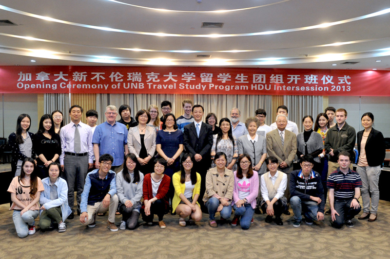 应我校邀请,加拿大新布伦瑞克大学留学生代表团于5月6日抵达我校,开始在我校的2013年春季学习、交流和中国文化体验活动。5月7日上午,学校在科技馆举行开班仪式,副校长郑宁,国际交流合作处、国际教育学院负责人等参加。