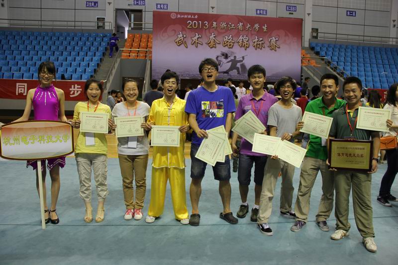 在5月19日结束的2013年浙江省大学生武术套路锦标赛中,我校武术队表现优异,共夺得1金1铜等11个单项奖,团体获“体育道德风尚奖运动队” 称号。