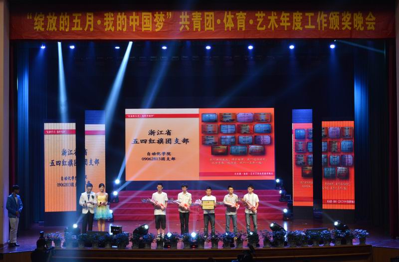 颁奖晚会分为“旗帜的信仰”、“青春的脚步”和“梦想的力量”三个篇章,对浙江省五四红旗团支部,浙江省优秀志愿服务项目,浙江省第十三届“挑战杯”大学生课外学术科技作品竞赛特等奖、一等奖,校“挑战杯”大学生课外学术科技作品竞赛优秀组织工作奖、优秀指导教师,校“阳光伙伴”竞跑班级赛团体第一以及“十佳雷锋寝室”等集体奖项和校优秀团干部、优秀团员、十佳科技之星、十佳志愿者、十佳学生社团社长、十佳媒体之星、十佳体育明星、十佳文艺标兵、十佳礼仪等先进个人进行了表彰。