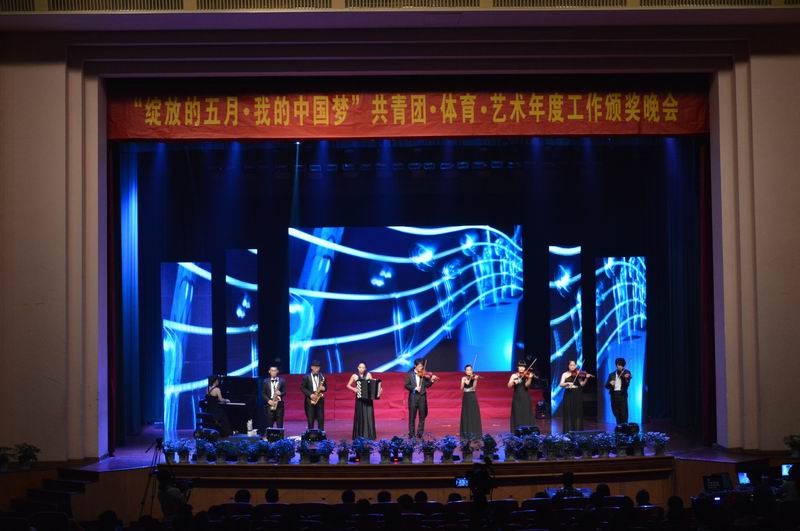 5月29日晚,“绽放的五月·我的中国梦”共青团·体育·艺术工作年度颁奖晚会暨校艺术团汇报演出在下沙校区文化活动中心剧院举行。校党委书记费君清,校党委副书记金一斌,校党委委员、党校办主任吕金海,下沙高教园区高教办主任胡慧华,下沙经济技术开发区团工委书记李征,全国优秀人民警察、白杨派出所所长张思洋,宣传部、教务处、学工部、国际合作交流处、保卫处、后勤服务总公司、体育与艺术教学部、校团委等部门负责人出席晚会并为获奖者颁奖,各学院学生工作负责人、各类先进代表800余人观看了文艺汇演。