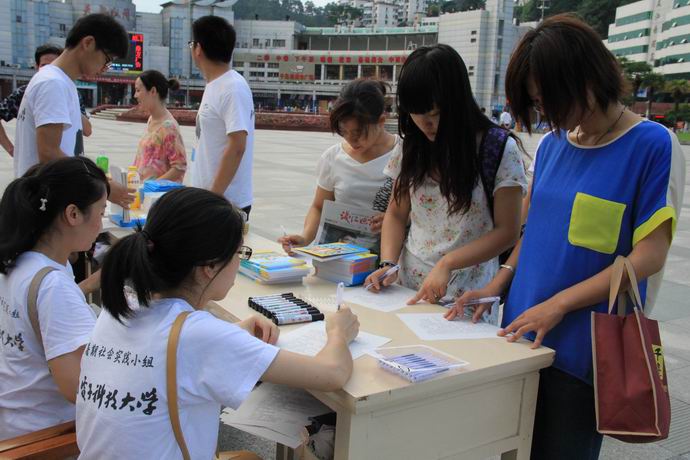 在众多的实践队伍中,我校大学生艺术团的同学们筑成了一道靓丽的风景线。他们秉承“艺术走进生活,艺术温暖人心”的宗旨,分别进行了“西湖快闪”和“杭电有情,定西坚强——赈灾义演”等实践活动。他们在地铁上、西湖边“闪”来“闪”去,将新潮与经典相结合,用新颖的形式为市民表演经典曲目,将高雅艺术带到街头,得到了人民网、凤凰网、中国新闻网、钱江晚报等18家主流媒体的关注和报道。7月22日,甘肃定西传来地震的消息,这支充满爱心的团队当即决定前往甘肃兰州举办“杭电有情,定西坚强”义演募捐活动。7月29日,义演活动如期在甘肃黄河桥北的龙源举行。同学们通过义演共募集善款7453元,并全部捐给当地慈善机构。义演募捐活动被甘肃电视台、甘肃广播电台及多家报社跟踪报道,取得了良好的社会反响。来自艺术团的朱凤致同学说:“我们没有很多钱来帮助灾区,但是我们希望用艺术和我们的热诚为灾区人民带去希望和力量。”