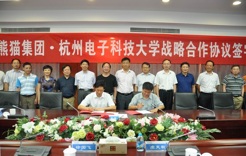 徐国飞对我校人员的到访表示热烈欢迎。他说,杭电为我国IT企业培养了大批优秀毕业生,熊猫集团及下属企业的许多高管都是杭电的校友。熊猫集团近年来高度重视技术创新,相信通过与杭电在人才培养、产学研等方面的深入合作,可以达到双赢的目的。