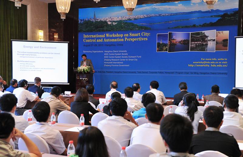 8月27日至29日,由我校主办、我校自动化学院承办的“智慧城市国际会议”在浙江宾馆召开。IEEE 控制系统协会(CSS)、IEEE 控制系统Outreach基金、国家自然科学基金委员会、霍尼韦尔(国际)和教育部检测与自动化技术工程研究中心等单位代表,杭电浙江省智慧城市研究中心相关人员以及我校自动化学院等学院师生代表参会。我校校长薛安克、霍尼韦尔集团院士塔里克·萨马德出席并致辞,会议由我校特聘教授葛铭主持。