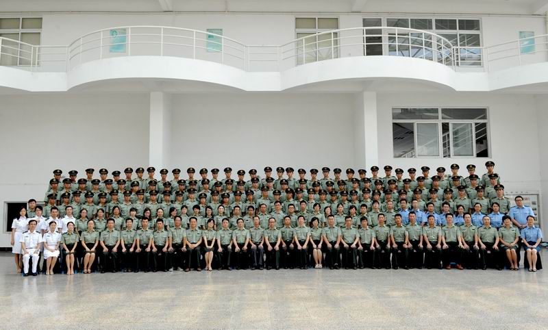 会后,出席见面会的领导与师部成员、参训教官及全体政工干部合影留念。(武装部)
