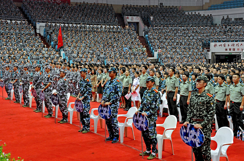 9月9日晚,我校2013级本科生军训动员大会在下沙校区体育馆举行