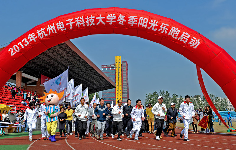 校领导和千余名师生一起环绕体育场跑道跑步前行, 2013年“冬季阳光乐跑”活动启动