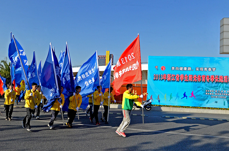 启动仪式上,我校拉拉操队和武术队表演了精彩的节目。随着发令枪的一声鸣响,省教育厅领导、下沙高教园区14所高校和中学领导以及来自各校的1200余名学生一起开跑,标志着2013年浙江省学生阳光体育冬季长跑活动正式启动。据悉,全省各地各校也将组织学生于近期开跑,活动将持续到明年4月。