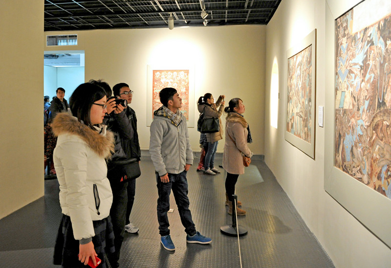 28日,留校学生走进浙江美术馆参观敦煌艺术展,7个复原洞,59幅壁画临摹作品,10尊彩塑复制品,10件花砖真品,10件藏经洞出土经卷真迹……同学们近距离欣赏、感受了敦煌艺术的魅力,经历了一次奇妙的“时空之旅”。来自湖北的李同学说:“能近距离接触几千年前的中华瑰宝,真是一次非常奇特的体验,虽然不能回家过年,有些小小的失落,但这个意外的惊喜足以让自己记住这个特别的春节。”