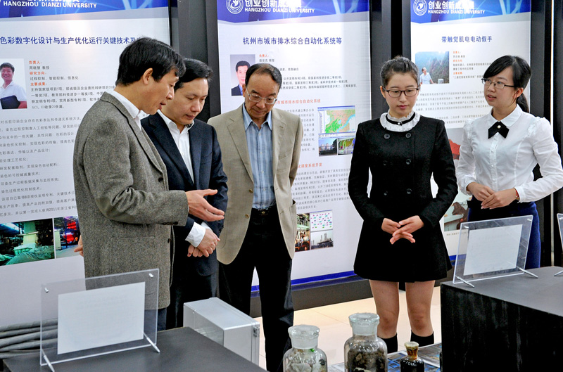 会前,赵一德等还参观了我校“创业创新成果展”及国防重点学科实验室。(浙江保密学院/文 宋建跃/摄)
