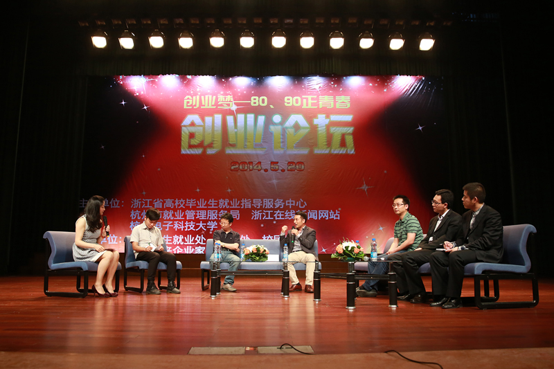 5月20日,由浙江省高校毕业生就业指导服务中心、杭州市就业管理服务局、浙江在线与我校联合举办的浙江省大学生创业论坛,在我校下沙校区文化活动中心剧院举行。