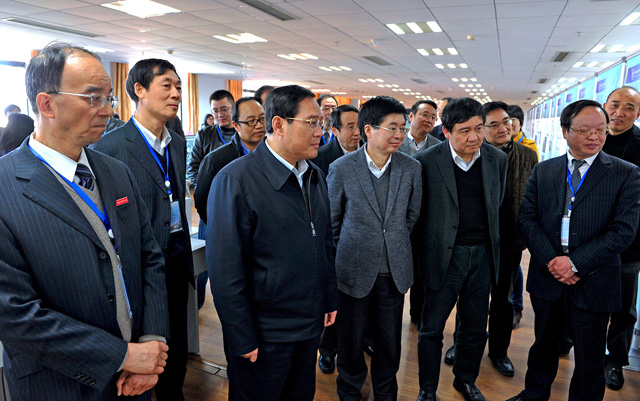在国防重点实验室,李强指出,杭电在国防军工和军工技术民用化等方面做了很多工作,要继续高度重视科研与国家需求、经济发展的结合,为浙江经济发展、国家国防事业作出更多的贡献。