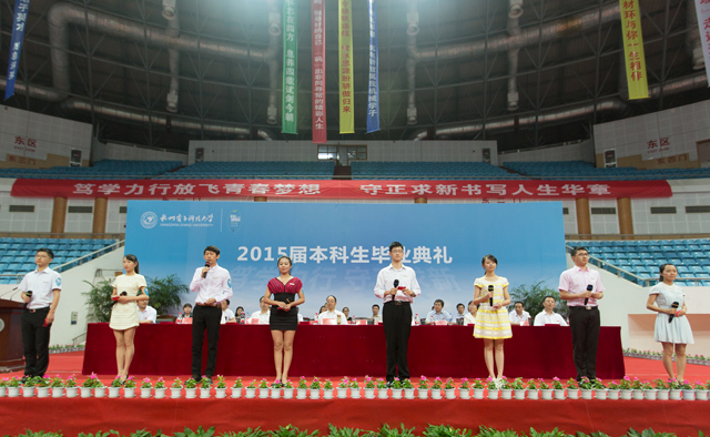 典礼上,校党委书记费君清宣读了253位省级优秀毕业生、473位校级优秀毕业生、223位信息工程学院优秀毕业生名单,副校长胡华宣读了2015届本科毕业生文件。校领导分别为省级和校级优秀毕业生代表、毕业生代表、校友联络员代表颁发荣誉证书、毕业证书和校友联络员证书。