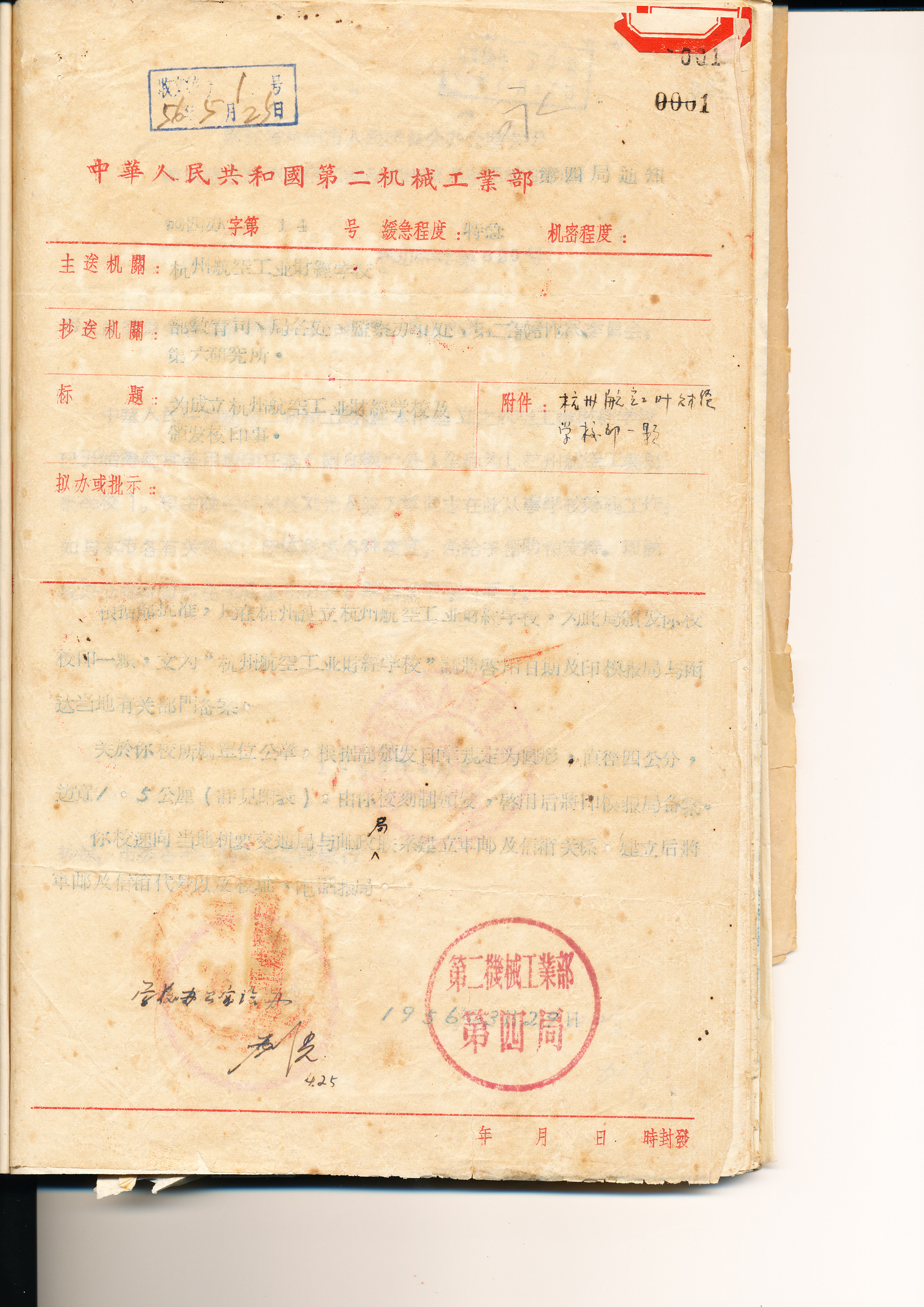 1、第二机械工业部关于成立杭州航空工业财经学校文件
