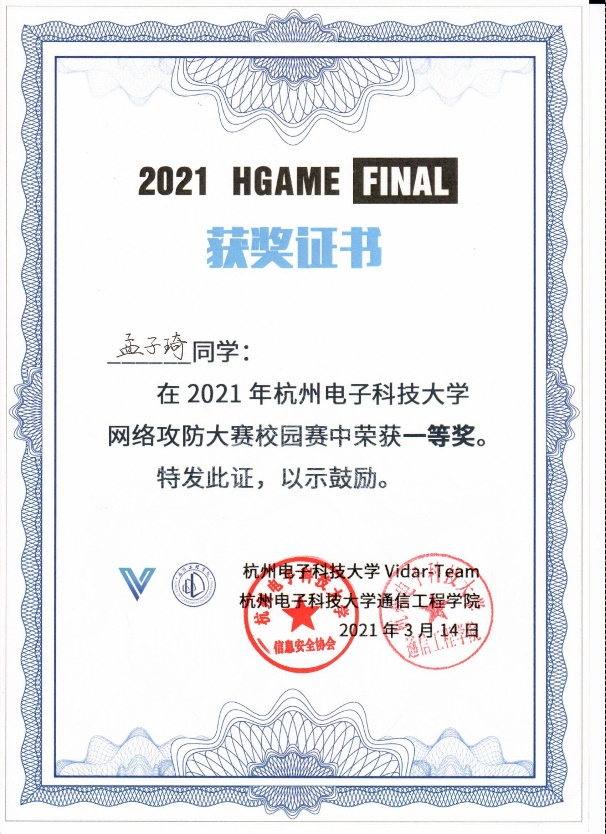 3月13日,经过1个多月的线上比赛的筛选,第七届杭州电子科技大学网络攻防大赛校园赛决赛(HGame 2021 Final)在信仁楼120实验室顺利举办。该赛事由杭电通信工程学院信息安全协会(Vidar-Team)主办,设一等奖六名,二等奖十名,三等奖若干名。