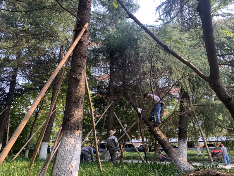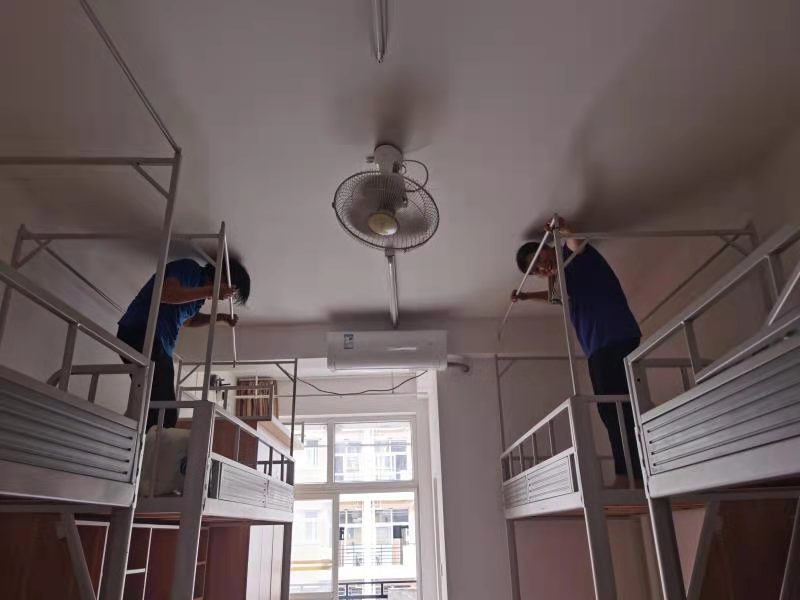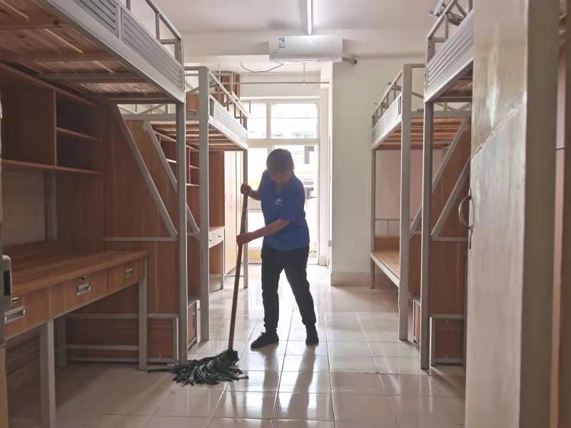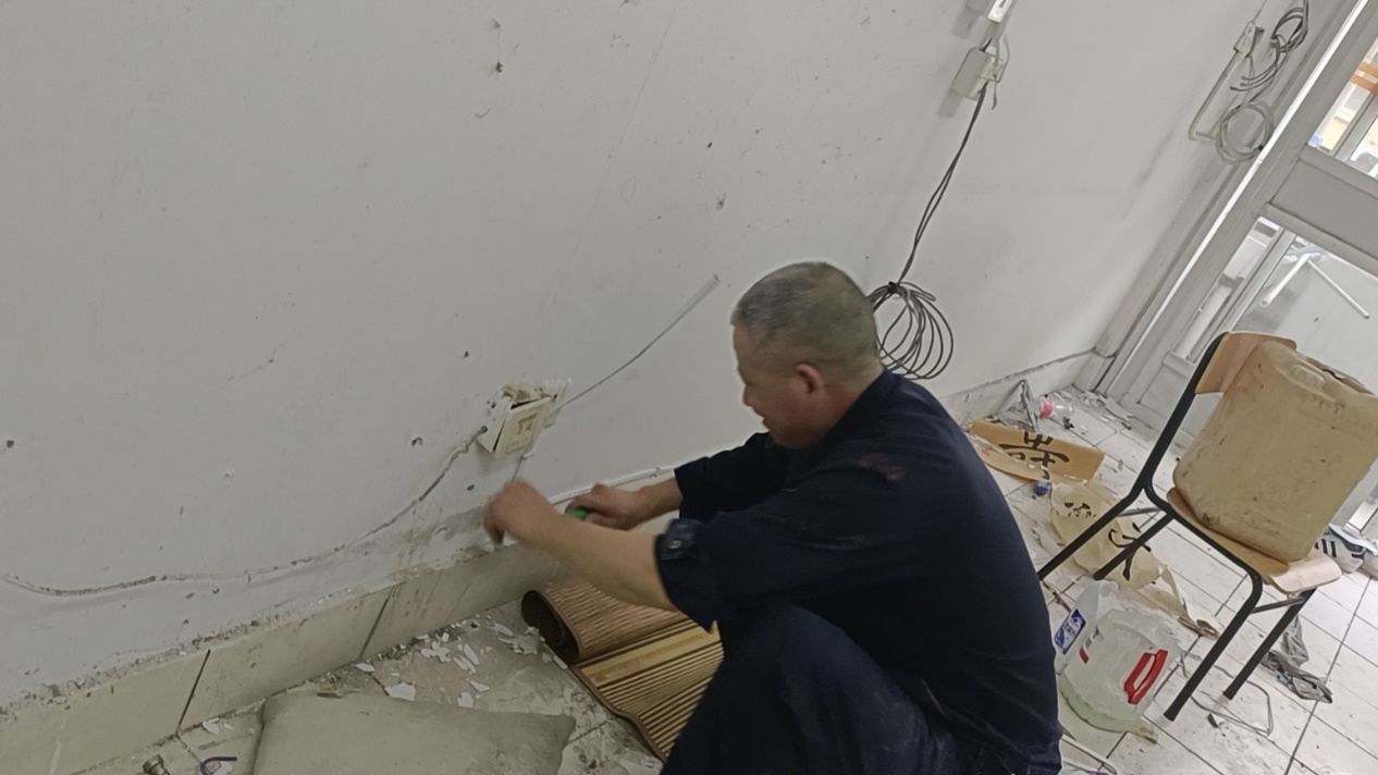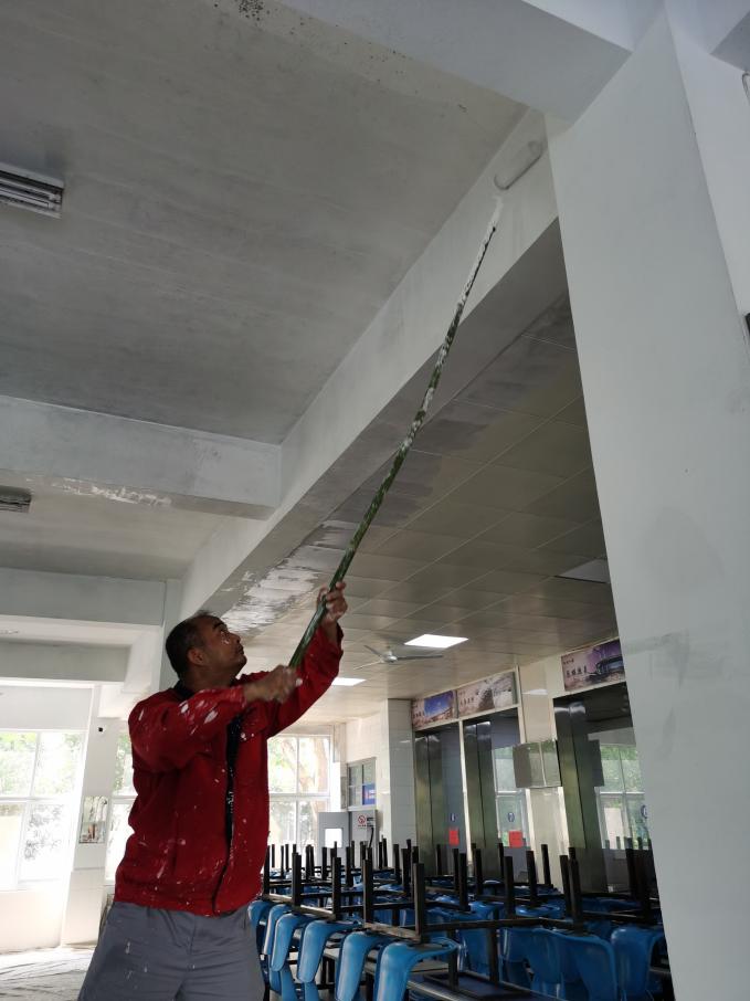 巳时9:00-11:00。太阳升起,校园恢复了往日的喧闹。维修师傅们开启了一天的辛勤修缮工作。经过他们的手,原已坎坷不平的道路在他们的妙手下平坦如初。假期除了日常维修工作外,校园内各项维修专项工程开展得如火如荼。从高空到地面,从室内到户外,完成了1504间毕业生宿舍整修,宿舍卫生间门1185扇维修,1200间阳台栏杆粉刷,生活区东、北侧商铺地砖5000余块补修,校区南大门地砖350平方、新生宿舍插座安装,全面对校园内所有供水供电设备检修,排除安全隐患,用假期无休来保障维修任务顺利完工。