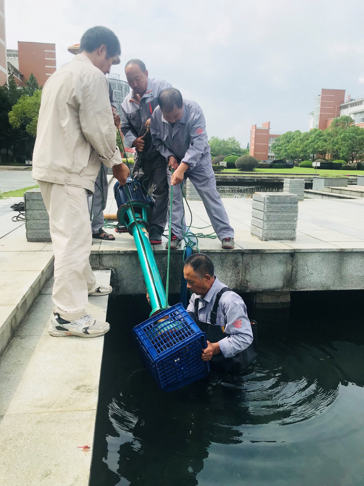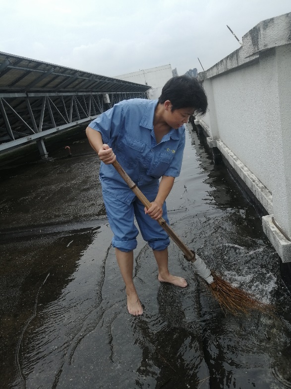 申时15:00-17:00。这个暑假台风、暴雨频频来袭,后勤人未雨绸缪做好抗台防汛应对工作,待强降雨天气第一时间赶赴现场,全力以赴清淤疏通下水道,清洗被积水、淤泥严重污染的路段。后勤集团40余名党员带头冲在一线,每天超过360名员工坚守岗位,80多名员工24小时在岗,严阵以待,守护校园。