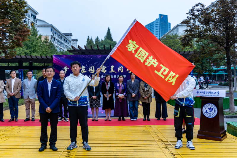 保卫处副处长段利强为家园护卫队授旗。学生代表宣读《共创“公寓幸福家园”倡议书》。号召同学们携起共建公寓幸福家园,共创公寓发展新篇章。