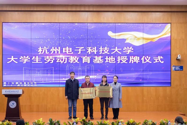 钱波、吕金海为学生公寓服务中心、饮食服务中心“杭州电子科技大学大学生劳动教育基地”授牌。后勤集团作为学生劳动教育实践基地第一阵地,一直以来积极搭建大学生实现学生自我服务、自我管理、自我教育的实践平台。现场播放了后勤公寓中心自制的纪录片《我和我的楼》,展现了生活指导老师和楼层长互相配合,忙碌而充实的一天。