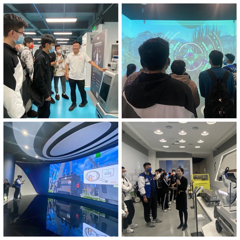在工作人员的引导下,同学们先后参观了电力馆、轨道交通、石油石化馆、未来馆、实验室等,听取了杭电校友关于企业发展历程、科技创新、人才招引、企业文化、成果转化等方面的情况介绍,并在展示区驻足观看、亲身体验3D实镜检测、力反馈等前沿技术,深入了解了智能巡检机器人、线路巡检机器人、列车车底检测机器人等轨道交通智慧产品,近距离接触了企业的实际产品和应用。在校友的带领下,同学们还参观了申昊党群人才服务中心,深入了解企业党建文化。