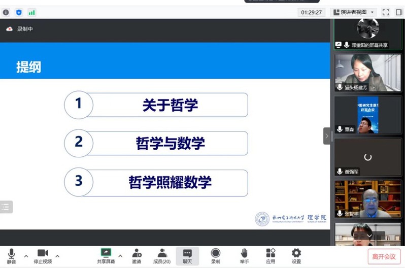 为顺利推进数学类课程思政教学研究工作,1月8日晚,理学院数学类课程思政教学研究示范中心在线上召开“内功修炼”会。此次腾讯会议持续2个小时,中心20位成员会前积极准备,云上畅所欲言,进一步统一了思想,明确了工作重点,为2023年中心建设打下了良好基础。