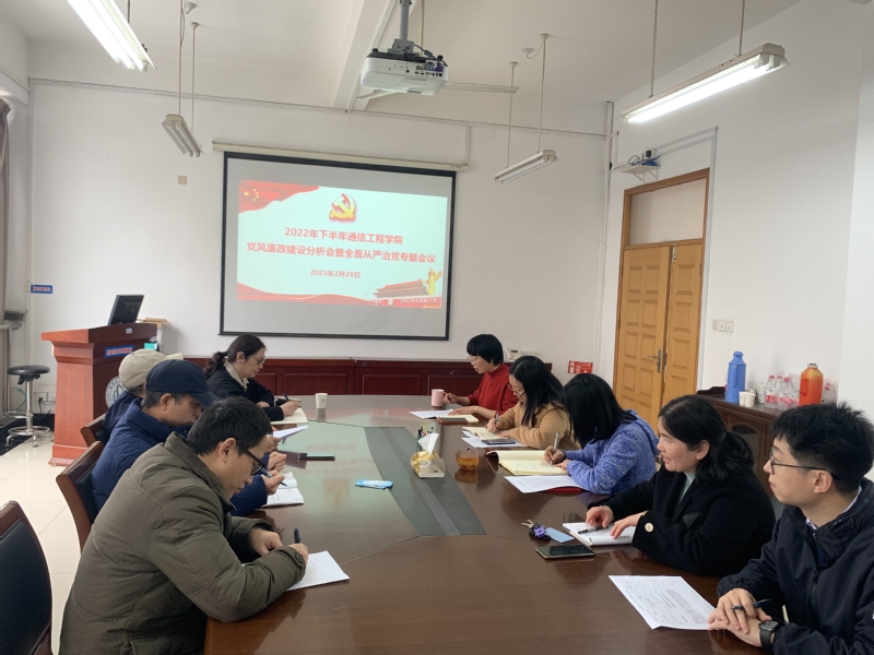 2月28日下午,通信工程学院召开2022年下半年党风廉政建设分析会暨全面从严治党专题会议。会议学习领会党的二十大精神,贯彻落实省第十五次党代会精神和省纪委十五届二次全会精神,全面总结下半年学院党风廉政建设情况,深入分析、系统研判、重点研究存在的问题和原因,并提出整改措施。校纪委委员、审计处处长林芳到会指导,学院党委书记罗美华主持会议,学院领导班子成员、党委委员参加会议。