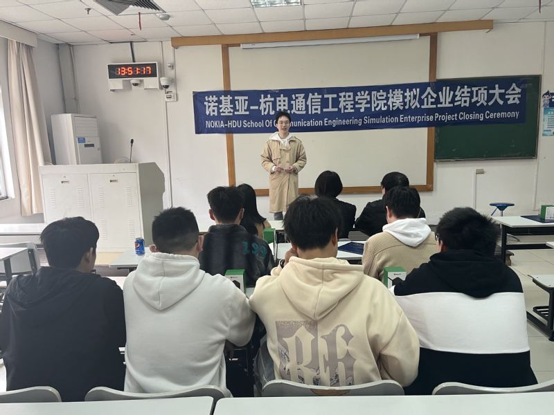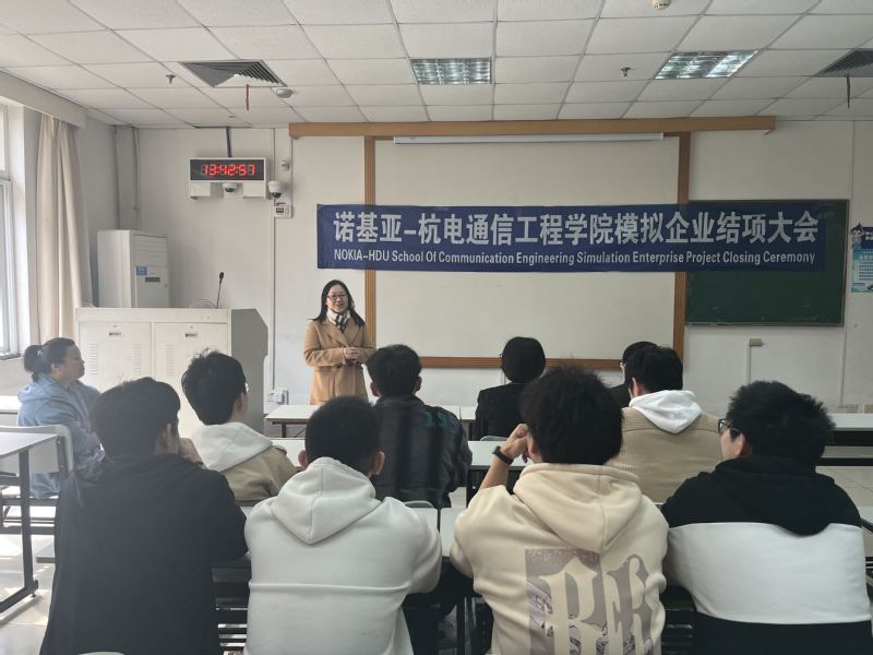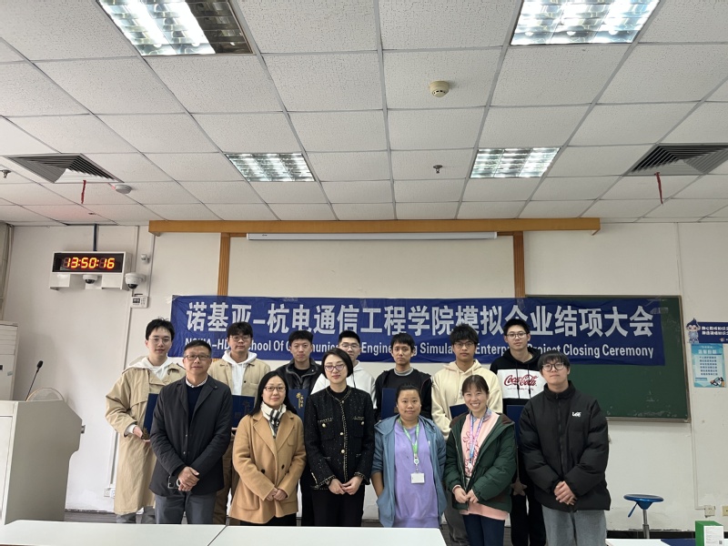 3月1日下午,诺基亚—杭电通信工程学院第二期模拟企业结项仪式在信礼楼115隆重举行。通信工程学院参与第二期模拟企业的8名同学顺利结项。诺基亚杭州研发中心副总经理陈颖女士,模拟企业项目经理姜浩真、朱慈慧到会祝贺,通信工程学院应娜副院长、校企负责人郭锐参与仪式。