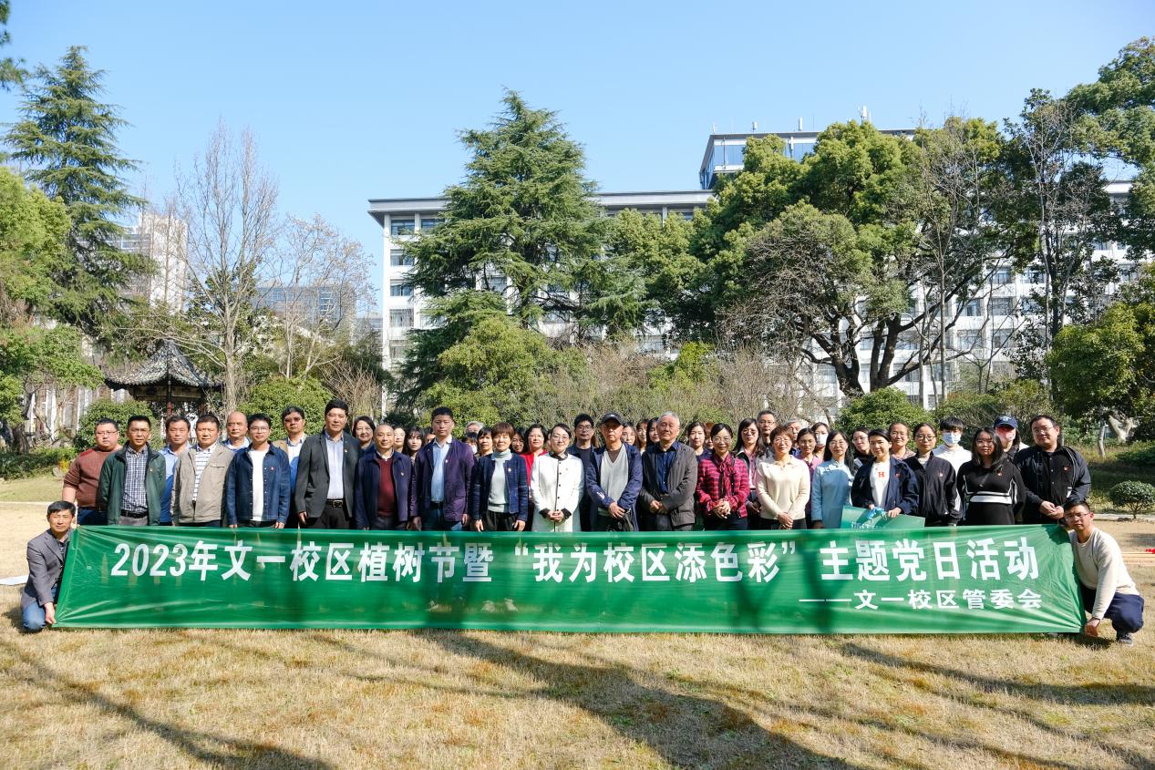 3月10日上午,在第45个植树节来临之际,资产经营公司党支部承接策划了文一校区植树节暨“我为校区添色彩”主题党日活动。校党委副书记钱波,副校级领导、文一校区管委会副主任郝敬习,原校党委副书记陈定国,原公管处处长王建元,及校机关党委、组织部、公管处领导应邀出席。在文一校区工作的离退休处党委、继续教育学院党委、资产经营公司党支部、浙江省信息化研究院党支部、文一服务中心党支部全体党员参加此次活动。