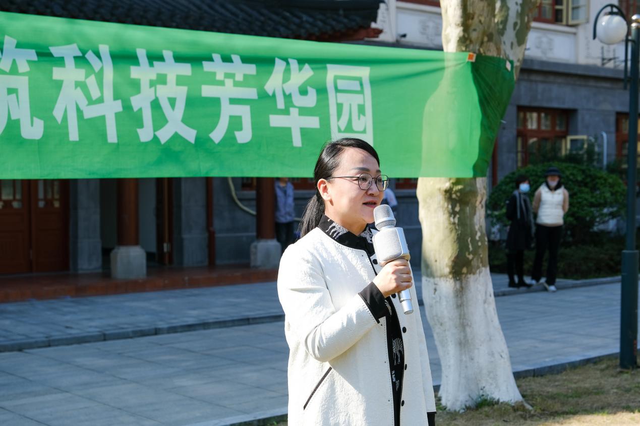 郝敬习代表校区管委会致辞,她首先感谢应邀出席的领导和嘉宾。她指出,此次植树节活动是近20年来的首次植树活动,也是2021年4月30日杭电文一数字经济创新科技园正式开园以来的首次植树活动,十分的有纪念意义。她说,此次植树节和主题党日活动就是贯彻落实习近平新时代中国特色社会主义思想中的新发展理念的具体行动。党员就是一面旗帜,就要作表率。支部是党的基层党组织,就是战斗堡垒。她要求大家积极贯彻落实习近平总书记“绿水青山就是金山银山”的理念,坚定不移走生态优先、绿色发展之路,并号召大家共同努力建好杭电文一家园,让文一校区增添新色彩、换发新活力。