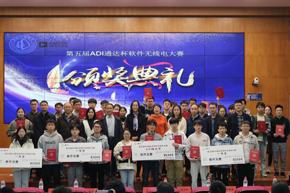 最后,全体领导老师和获奖同学们上台合影留念。至此,第五届ADI通达杯软件无线电大赛圆满结束。