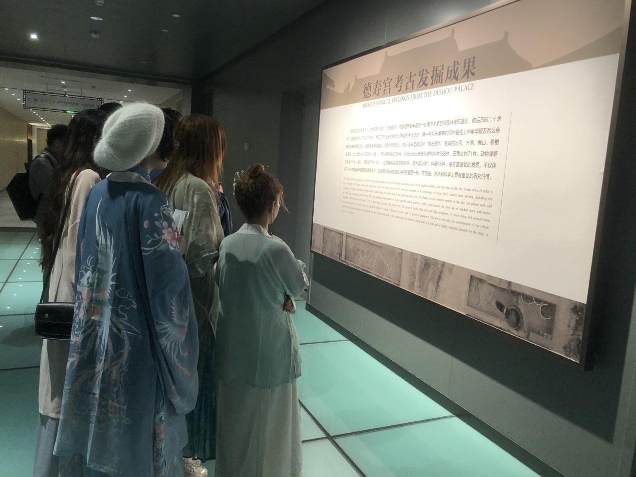 留学生依次参观了重华宫复原陈设、南宋历史文化陈列、重华殿正殿遗址、慈福宫及苑囿遗址等展区,对南宋的发展历史、经济文化成就、科学技术与对外贸易、文化等有了进一步的了解。通过纪录片、文物陈列、实景沙盘、建筑模型、多媒体、CAVE空间投影,留学生领略了南宋宫廷生活场景,感受到了文物背后的厚重历史和深刻的文化内涵。