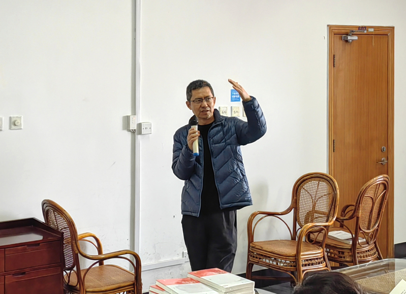 主讲嘉宾丹溪草老师首先分享了《人类命运:变迁与规则》一书的创作历程,他因身体原因辞去工作前往广东惠州疗养,在那个闲静的南方佳境,仰望是那孤飞的雄鹰,这使他思考孤行与群;远眺是千帆竞过,这使他联想到生命奔流不息向终点进发。他因一次偶然观察到蚁窝结构之完整,以蚂蚁之微小,尚且建立了如此分工严密、设施完备的小社会,人类常以自然主宰自居,面对自然尚应存有敬畏之心。他以老人授天书于张良的故事点出守信与遇见的重要性,人就是一个又一个的遇见,遇见是机会是选择,提出“信为基,社会之所以维系”的观点。他还通过举例来说明人与周围的关系是信息的交流,从心、语、面、眼、情、行等六个方面来叙述为人处事的方法:心生敬、语呈祥、面溢慈、眼宽阔、情平和、行慢良。