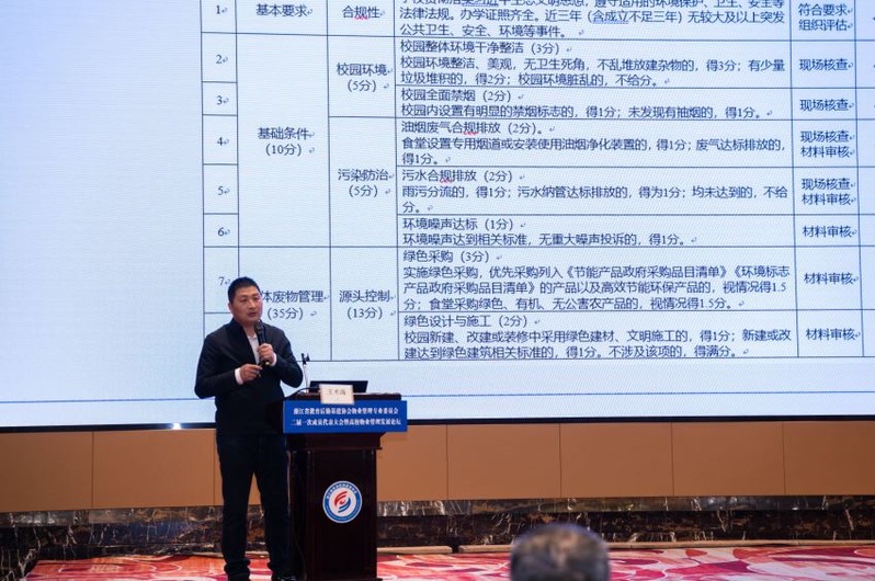 在高校物业管理发展论坛阶段,物业服务中心主任王术海代表学校做了《无废润泽校园 绿色深入人心》的分享汇报。