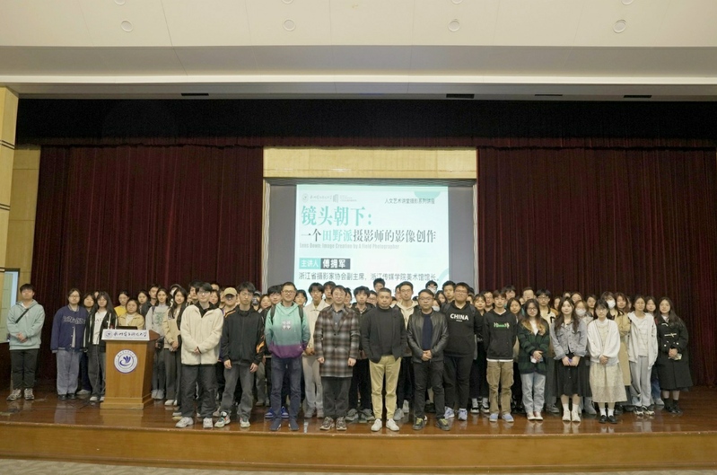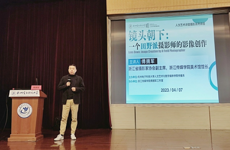 浙江省摄影家协会副主席、浙江传媒学院美术馆馆长傅拥军应人文艺术与数字媒体学院传播系邀请,于4月7日来我校科技馆报告厅作题为“镜头朝下:一个田野派摄影师的影像创作”摄影专题讲座。本次讲座是人文艺术与数字媒体学院人文艺术摄影系列讲座之一,由“新闻摄影与图片编辑”课程负责人张振颖老师主持,传播系主任李金城老师、工业设计系陈炼老师以及全校150余名学生现场参与。
